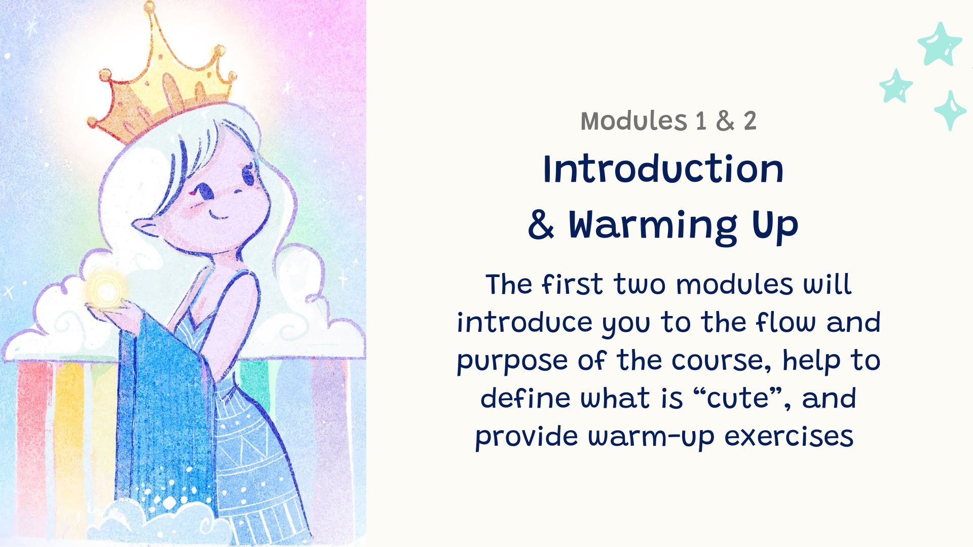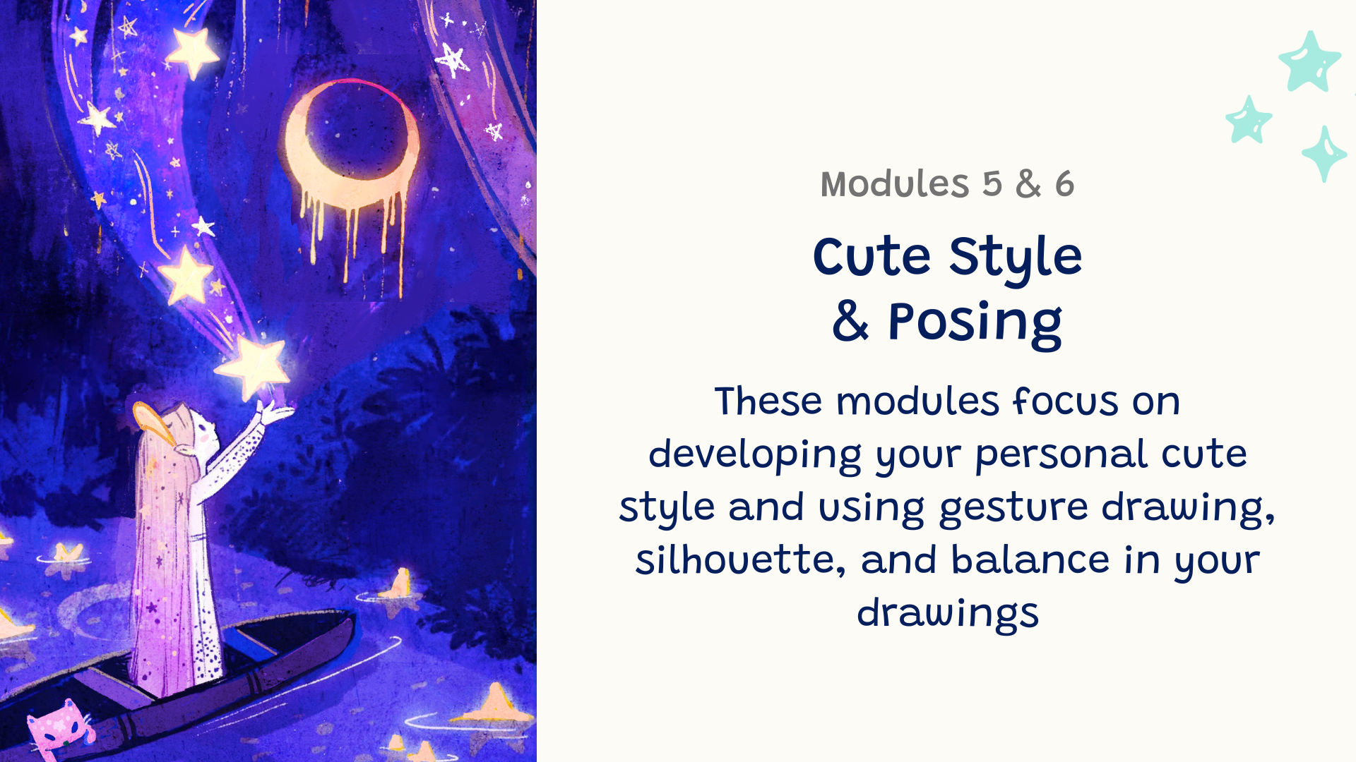 A beginner-friendly art course with 10 modules, 60+ video lessons, and 6+ hours of content made to teach you how to create cute characters